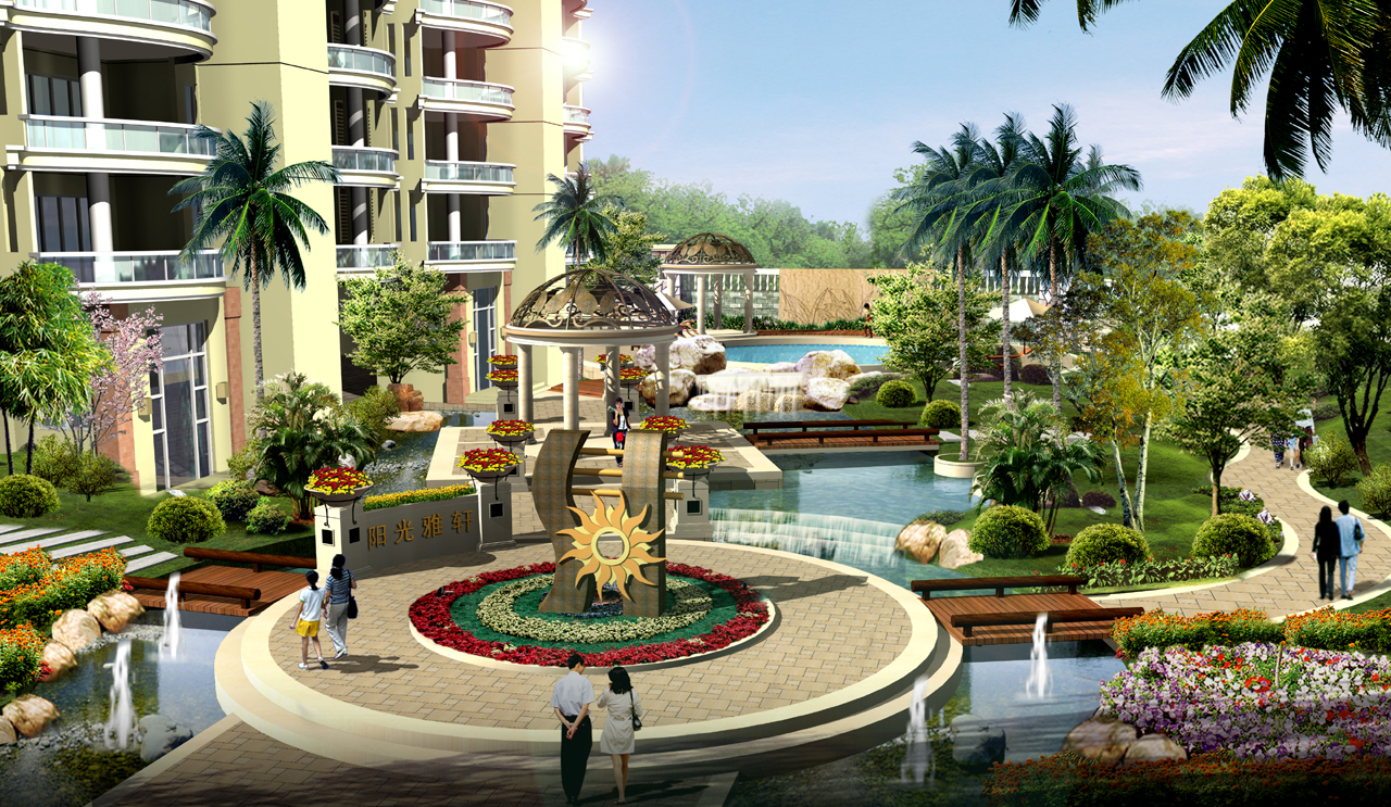 阳光雅轩,新加坡风情园林。自西向东的错落关系,小区空间随地形而变化,与南低北高的大空间格局形成有趣的对应关系。点、线、面相结合的多层次水景,地势的起伏变化,使空间通透、绿茵葱葱、富于光影变幻,构筑现代的绿化空间体系,形成优美舒适的居住空间环境,更增加了时代生活的人生真意。