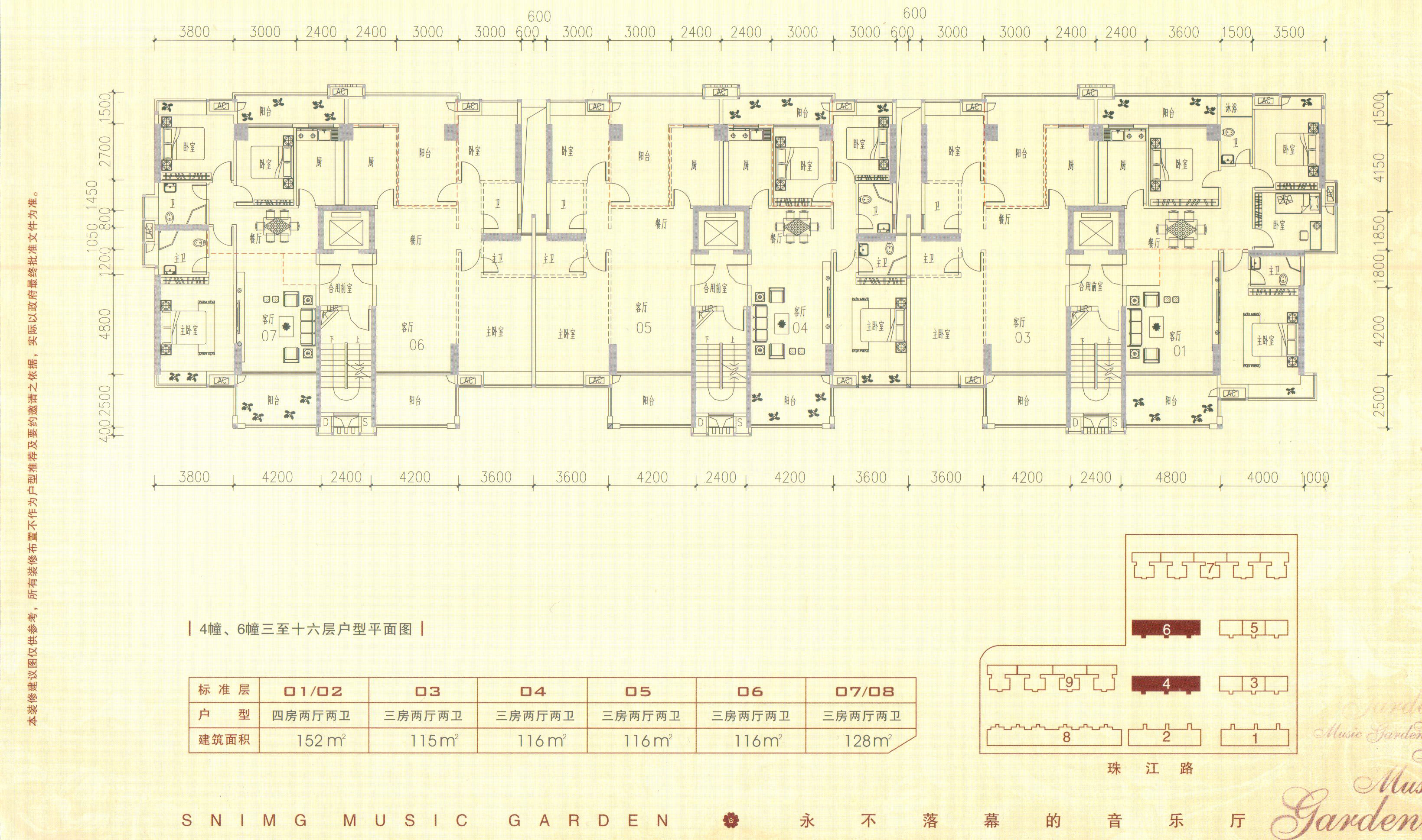 南信房产全力打造汕头首个音乐楼盘-----星海华庭,位于汕头市珠江路上新兴大型住宅生活圈内,共布置九幢14-18层点式和板式相结合的小高层住宅,借鉴传统潮汕民居的布局方式,形成层层递进、富有层次的建筑群,如同一首高低起伏、节奏感极强的交响曲。建筑以框架剪力墙结构为力学内容,以简约线条为美学形式,归序的纯板式小高层刚健有力,立面的设计线条流畅、简洁大气,带着动感又清晰的节奏感,展现出一种直达生命核心的旋律。设计也强调运用现代材料中竖向玻璃幕墙,阳台玻璃栏板、空调架线脚及栏杆等不同质感的材料,玻璃的晶莹、栏杆的通透与大片实墙面互为对照,构成丰富的虚实光影关系。各种装饰手法和美学构思始终围绕着音乐人生、快乐生活这一核心,体现了对生活的追求,给雍容华贵更增添上音乐的氛围。