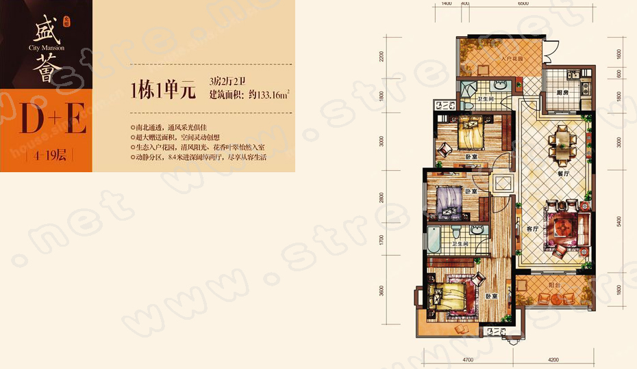 咨询电话::400-606-6969 转 68180 一宅盛天下,一邸荟名门,充耀•盛荟花园,占地约33361.1㎡,巨资构筑汕头首席23万㎡六星级奢华观邸。 充耀地产直属于香港升涛投资有限公司。升涛公司经过多年发展,现形成酒店业、金融证券业、房地产开发三位一体的集团公司,其中证券公司上市在即。 升涛公司投资的城市名人酒店已拥有四、五星级酒店十余家,遍布浙江、江苏、四川等地;未来五年,城市名人酒店集团计划管理星级连锁酒店超过50家,成为全国连锁星级商务酒店的第一品牌;2005年,升涛公司与深圳振业集团,联合开发54万㎡顶级别墅群——振业城。升涛公司,已在深圳、成都、惠州、汕头等城市,拥有近500万㎡的土地储备,计划在上述城市中央珍稀地段,重金打造城市人居地标。 Art Deco建筑美学,精于形,奢于心。外立面精选高档涂料和石材,雕刻利落的外形,时光的艺术在每一个力学交汇点欢跃。奢华的虾红石材的大堂墙身,英国棕进口石材的墙角,恰到好处的奢华笔触,不多不少。 屋顶环绕双花园,5万㎡皇家风情园林。充耀盛荟在每一栋屋顶,以国际的前瞻理念,精心设计屋顶环绕花园,奢华打造城市稀有双花园社区,将阁下于自然的接触空间扩展到极致,同时,创造出宅邸的层次之美,使观邸更显华贵巍峨。 首创空中养生跑道,恭呈主人私密世界。汕头豪宅界又一创举,于皇家风情园林中,匠心勾勒出一条空中私家跑道,树木和花草,一如侍卫,在静默中蕴含从容,阁下在此慢跑、散步、休闲等,外在的喧嚣完全闭屏,有的只是您与自然和世界的独处。 首席星级入户大堂,臻成归家第一礼仪。充耀盛荟重金打造星级酒店的奢华入户大堂,让您每次回家都多了一份尊荣。大堂地面甄选名贵石材,石材的厚重凝聚出尊崇的质感,美轮美奂中,空间的威仪在如此的奢华上张弛有度。 智能人脸识别系统,全球尖端。若仍需主人些许挂怀,怎能号称为奢华观邸?充耀盛荟专注为资本赢者提供六星级服务,引进全球顶级豪宅指定人脸识别安防系统,构筑城市名门私家领域,让赢者尽享细致入微的服务和安居。 优质教育体系,推动孩子赢取未来。盛荟的孩子的学习是最不用担心的,新津、金和、长安幼儿园近在咫尺。绿茵小学、长安小学、林百欣小学更是在家门口。聿怀初级中学、林百欣中学、翠英中学等众多名校环侍左右,从小学到中学的名校教育体系,让您的孩子起步就与世界同步。 城市的赢者,在双会所济济一堂。充耀盛荟超大奢华双会所,涵盖休闲、商务等复合功能,城市赢者,在这里构建专属的圈子,以六星级的配套为赢者营造交际空间。资本,或许就在这里不经意间的默契间升华。 浓缩商业万象,享您所想。充耀盛荟周边商场、休闲=娱乐等配套一应俱全,安居中尽享繁华。在盛荟特色商业街,国际商业和美食时尚全部荟萃于此,如同一个永不落寞的时尚T台,让您享您所想。在这里透明的橱窗与世界时尚风潮都能为你温儒呈现。 六星大宅,户型方正,南北通透。建筑的本意是居住,越是疏离于本意的细节,越显铺陈。奢华是外在,以赏心悦目取胜,奢适是内心,以尊重人性为根本。充耀盛荟在空间设计上,遵循城市人居特性,从户型朝向、进深、采光等都精心考量,只为打造城市领先的六星大宅。 充耀•盛荟花园,以城市名门,六星大宅之理念,集城市万千恩宠,汕头豪宅界又一创举!